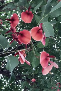 鸡冠刺桐的花语为永生、痴情、富贵吉祥,寄寓着人们的美好期许,其背后还藏着一段动人传说:一位印第安部落酋长的女儿,在反抗西班牙殖民统治时,被烧死在鸡冠刺桐树上,彼时花期未至,树上却骤然开出如火似血的红色花朵,用艳色诉说着不屈的意志。