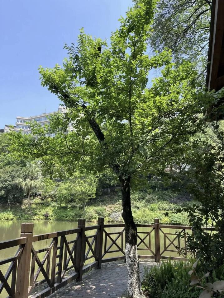 榆树并非川渝地区的典型树种,更是华北地区的代表树种,却在BB贝博艾弗森官方网站翠湖景区扎下了根。在翠湖下游的亭子边,四棵榆树静静生长,它们与湖边的棕榈相伴,一同俯身朝着湖水的方向舒展枝桠,在南方的水土里努力扎根、蓬勃生长,成为翠湖景区中一抹别样的风景,也为校园的自然景致增添了跨地域的乡土韵味。