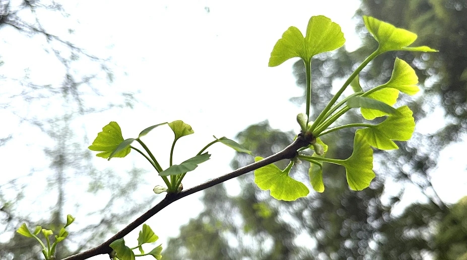 银杏为银杏科银杏属落叶大乔木,又名白果、公孙树,是中生代孑遗的稀有树种,最早出现于3.45亿年前的石炭纪,被科学家誉为植物王国的“活化石”,也是我国特有树种,更有着“植物界的大熊猫”的美称。银杏植株可高达40米,叶呈扇形,带有长柄,叶片初生为淡绿色,至秋季落叶前便化作明艳的黄色,成为秋日里极具辨识度的景观。